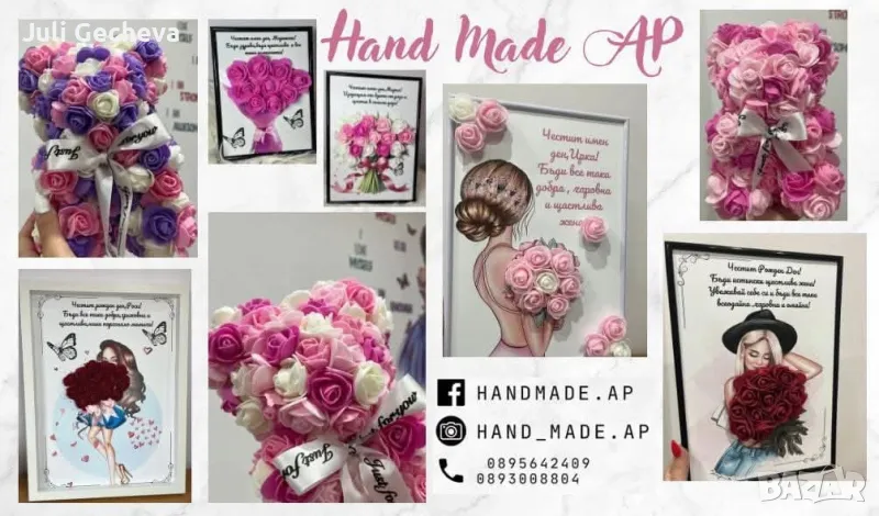 Имаш нужда от интересен и запомнящ се подарък?🎁Заповядайте на нашата страничка Facebook handmade.ap!!!Ние ще изработим за Вас оригинален и персонализиран подарък за всеки специален повод!!При нас ще имаш възможност: 🎁Да добавиш лично пожелание. 🎁Да добавиш ваши снимки. 🎁Да одобриш готовия вариант. преди изпращане! 🎁Да получите експресна изработка и бърза доставка!Ние ще направим най-доброто за Вас и вашия празник!🎉🎀🎁За поръчки на лични съобщения!🎀 🎀" ДИЗАЙНЪТ ОТ НАС, ПОВОДА ОТ ВАС!"🎀