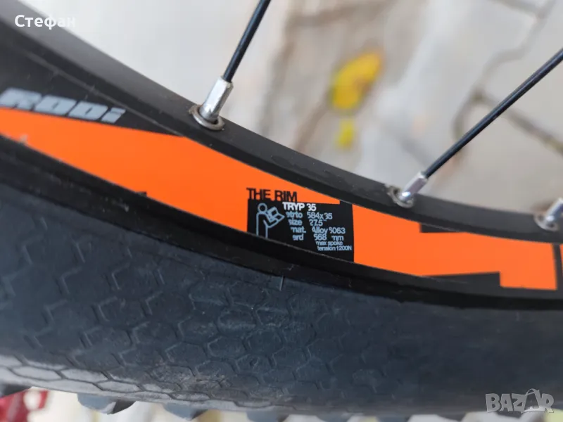 ползвана над 80% с размери 27.5 и i2.6 с вътрешна гума. мога да добавя и вентил за тюблес. Бандажа е за