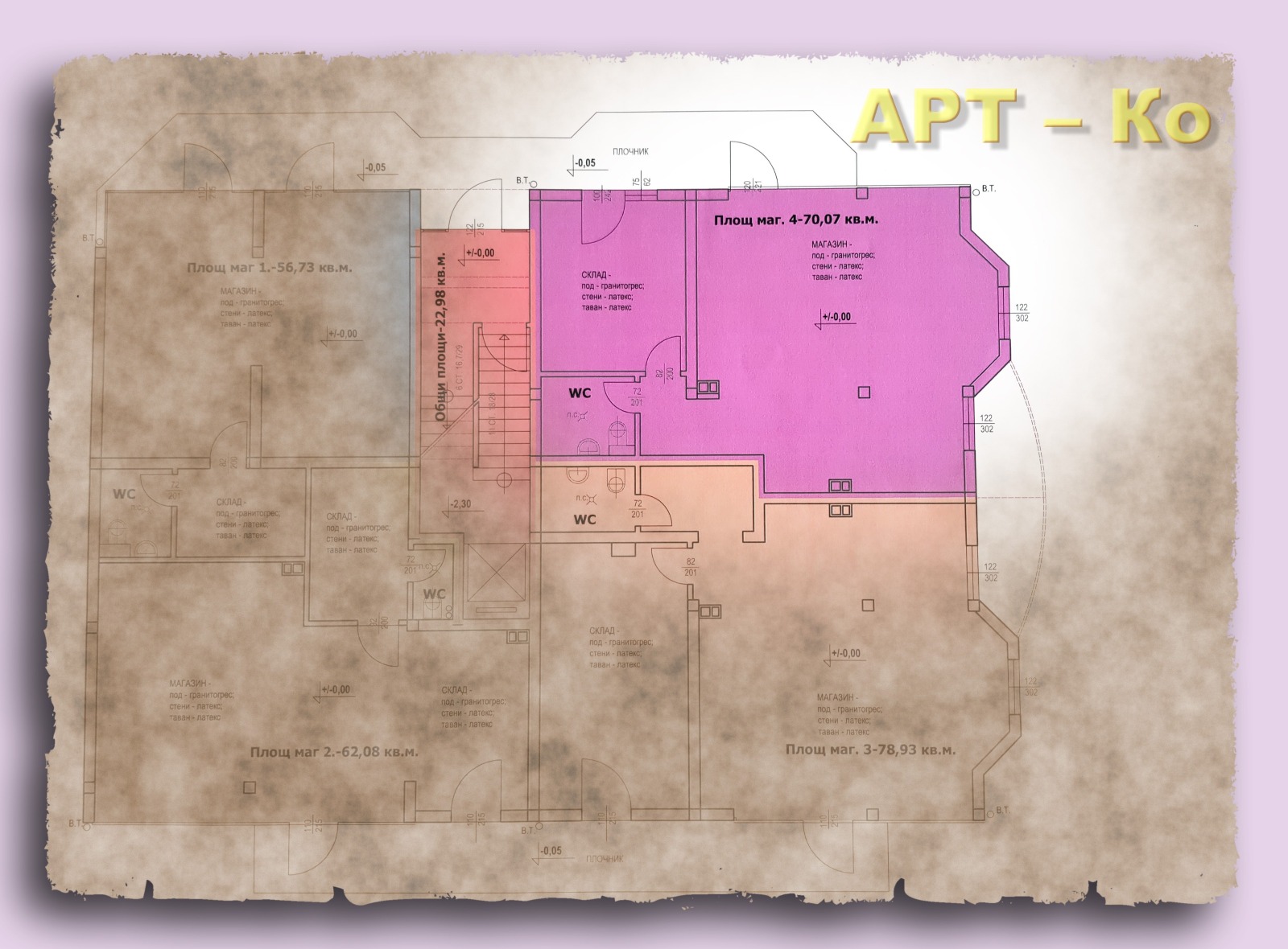 КОД -3937-М 2; Жилищна сграда с магазини, ново строителство, въведена в експлоатация / АКТ 16 от 2023 г. Локацията е в Перник-Изток. Сградата е с изградена инсталация и абонатна станция и сключен договор за присъединяване към централен ТЕЦ. Ситуирана e на метри от хипермаркети Кауфланд и Фантастико, и на километър от АМ Люлин. Разпределена е с приземен етаж с мазета, партерен с магазини и пет жилищни етажа. Офертата е за партерен магазин с площ 76,12 м2 с ид.ч. На чиста площ от 70,08 м2 са разпределени голяма търговска зала, склад и сервизно помещение. Има и прилежащо мазе с площ от 13,10 м2 с ид. ч. и то е включено в крайната цена.