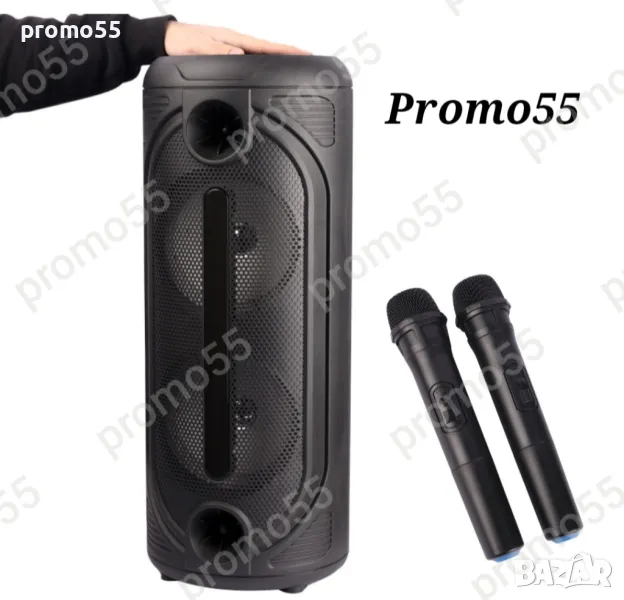 Голяма Караоке Колона 65см. 16 инча Тонколона с Два Безжични Микрофона и Блутут