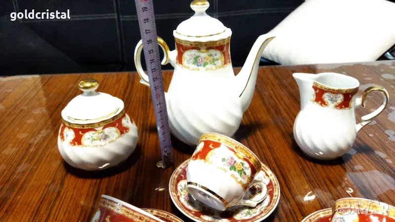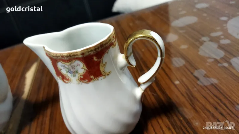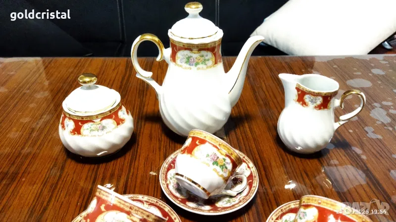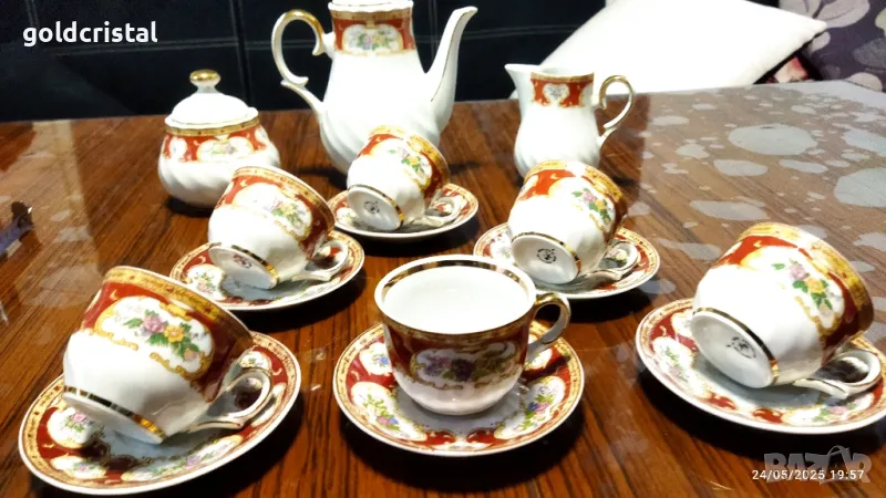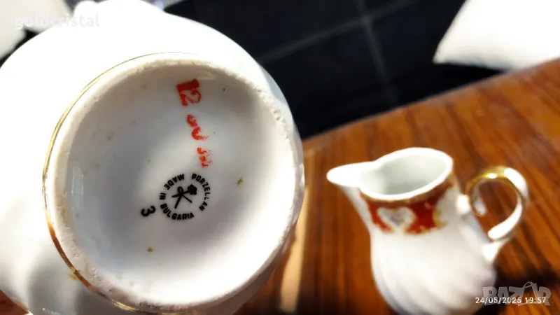 Стар български порцелан чаши за кафе 6 бр чинийки 6 бр чайник заханица латиера сервиз комплект сет лот ретро арт декор винтидж колекция стари старинни антикварни предмети обзавеждане за дома и семейството подходящи за подарък за ценители и колекционери