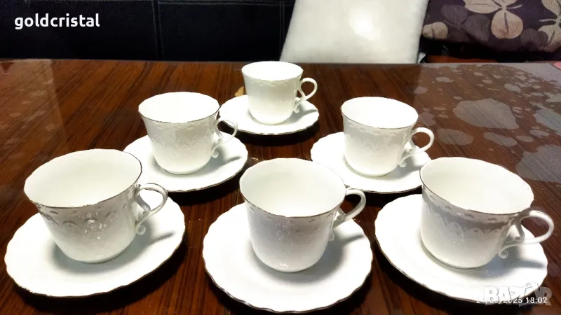 Стар български костен порцелан Бононя Ралица чаши за чай кафе 180мл плътен златен кант без забележки сервиз комплект сет лот ретро арт декор винтидж колекция стари старинни антикварни предмети обзавеждане за дома и семейството подходящи за подарък за ценители и колекционери