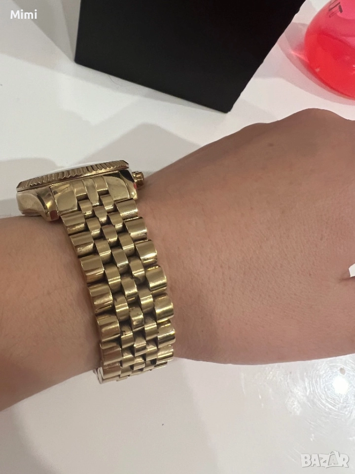 Часовникът е използван има леки минимални драскотини по верижката но не е талкова забележимо бех казала че е в перфектно състояние батерията е сменена
