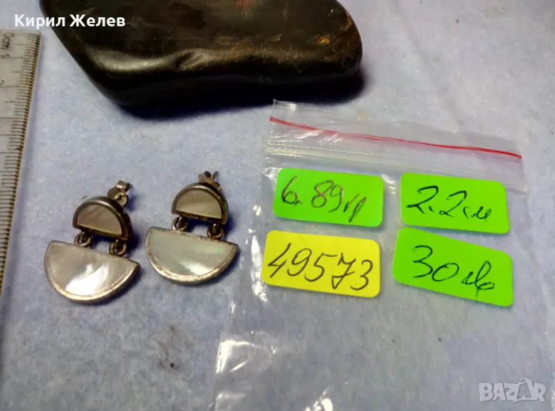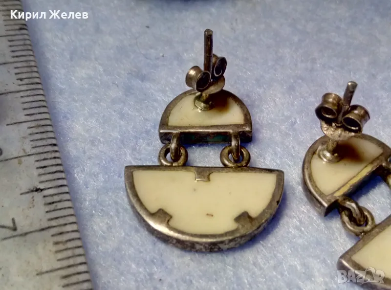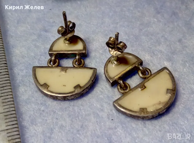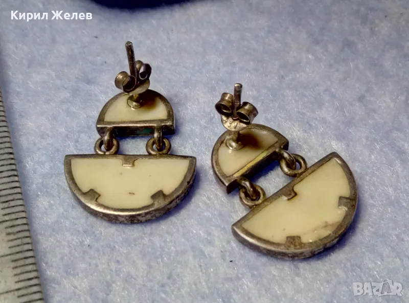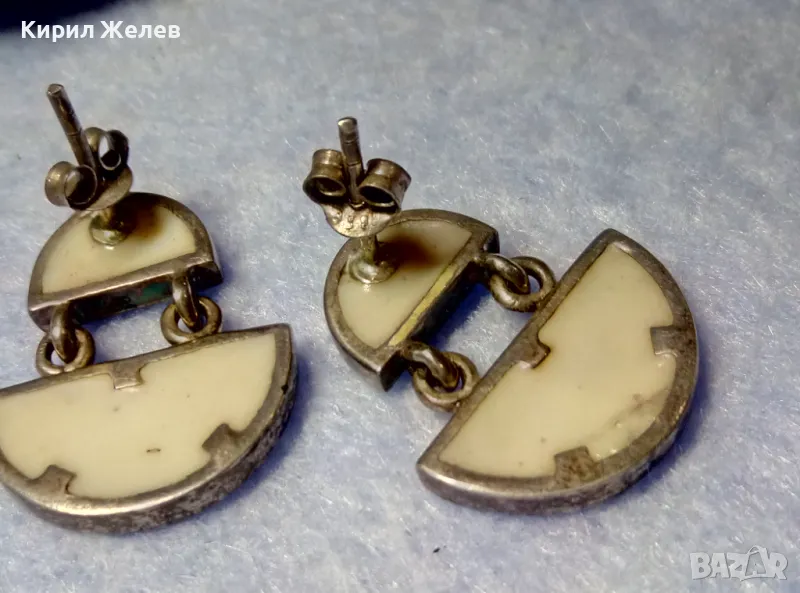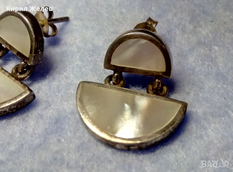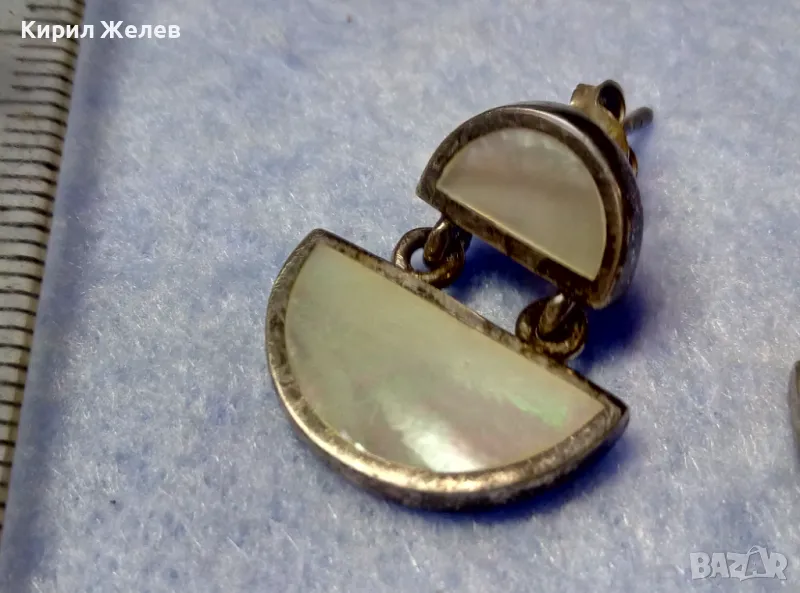 ПРЕЛЕСТНИ ВИНТИДЖ АРТ СЕДЕФЕНИ СРЕБЪРНИ ОБЕЦИ СРЕБРО 925 МАЙСТОРСКА РЪЧНА РАБОТА 49573