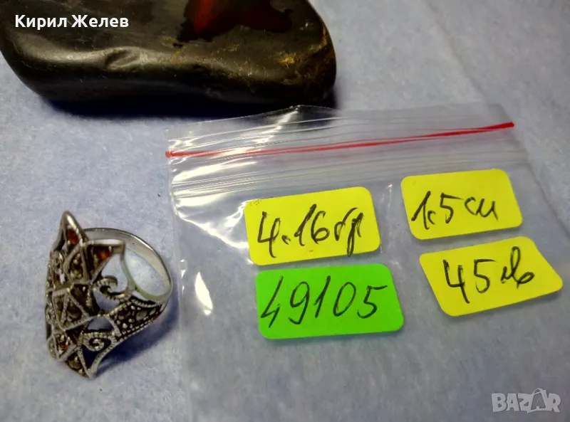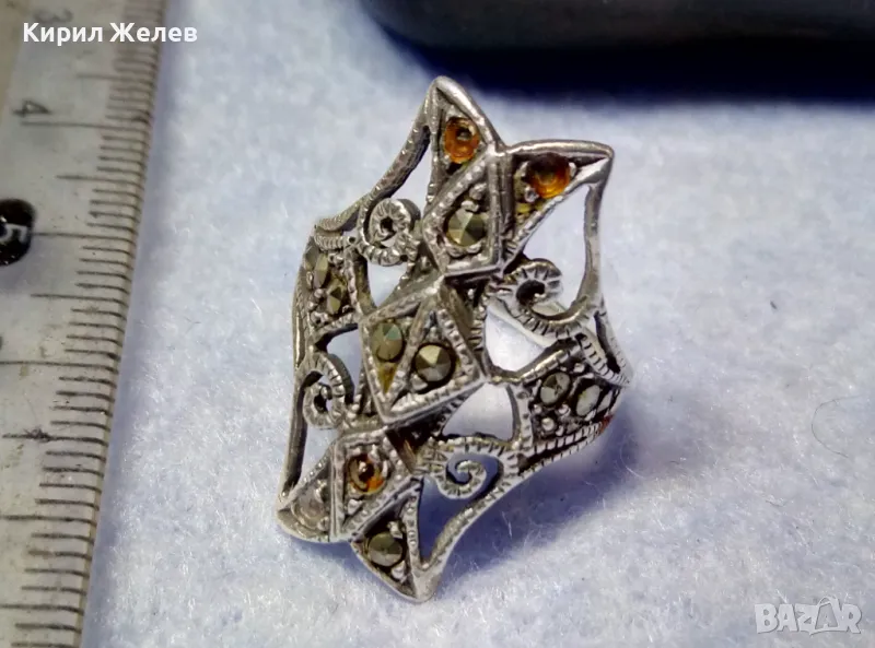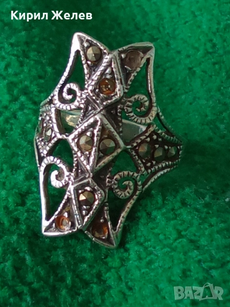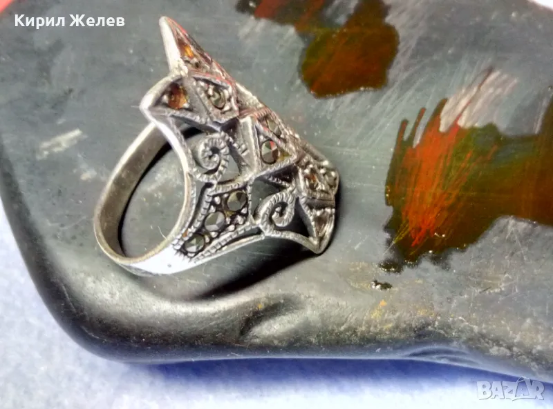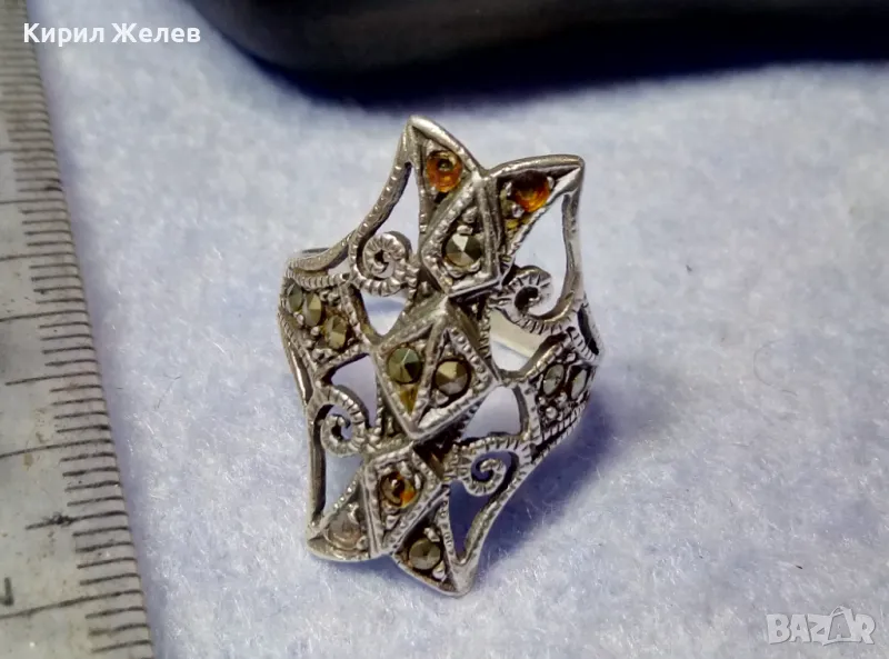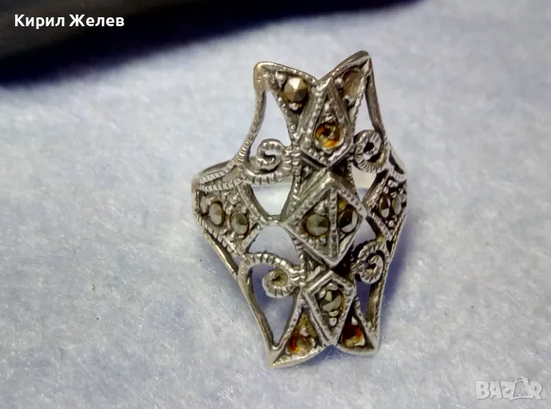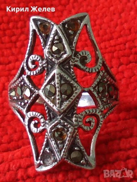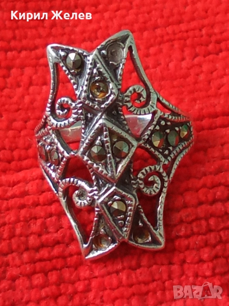 РАЗКОШЕН СТАР АЖУРЕН МАРКАЗИТЕН СРЕБЪРЕН ПРЪСТЕН СРЕБРО ВИСОКА ПРОБА ФИНА РЪЧНА ИЗРАБОТКА 49105
