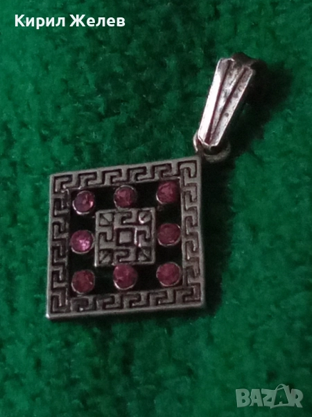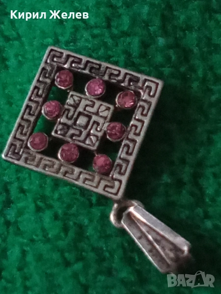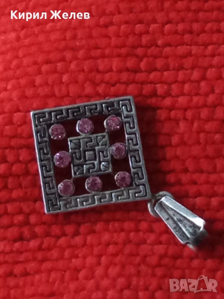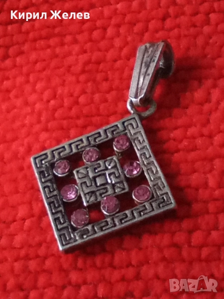 АЖУРЕН КЛАСИЧЕСКИ ОРНАМЕНТИРАН СРЕБЪРЕН ПЕНДАНТ СРЕБРО 925 с ИНКРУСТИРАНИ КАМЪНИ РОЗОВ АМЕТИСТ 18872