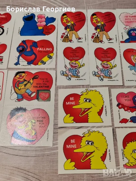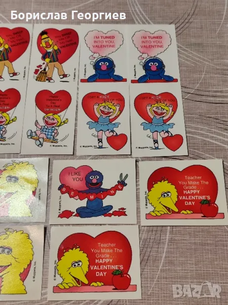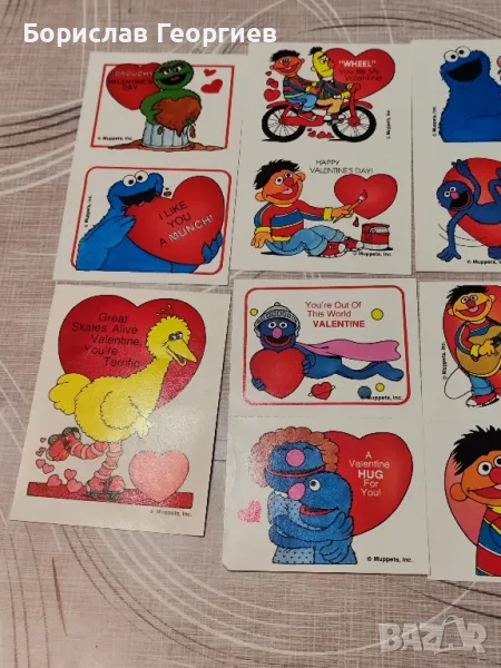 Стари картички за Свети Валентин на улица Сезам.Не е писано по тях.
