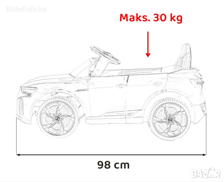 Размери на автомобила: 98 x 54 x 44 см (дължина x ширина x височина)