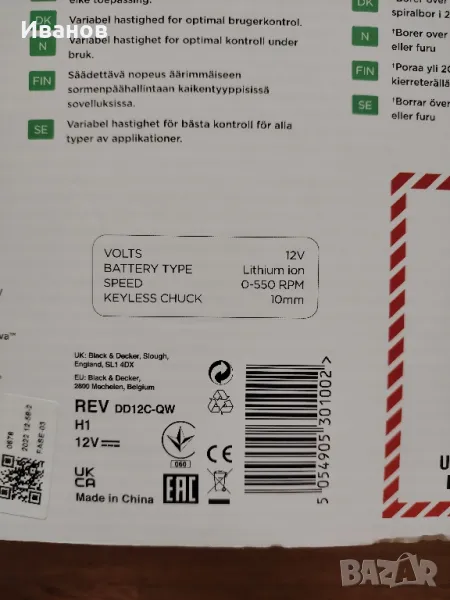 Акумулаторен винтоверт Black & Decker Reviva 12v, 1,5ah. Чисто нов не използван.