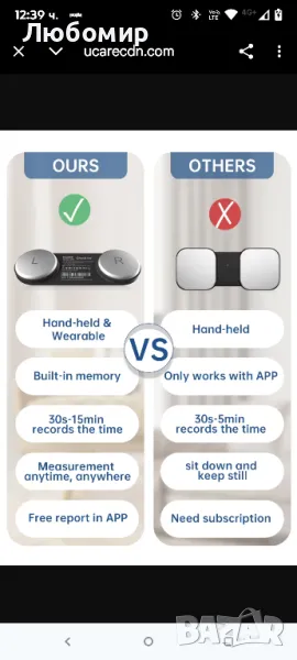 С вградената памет данните ще бъдат синхронизирани и неограничено съхранявани в приложението, можете лесно да споделяте отчети с лекари.Акумулаторна