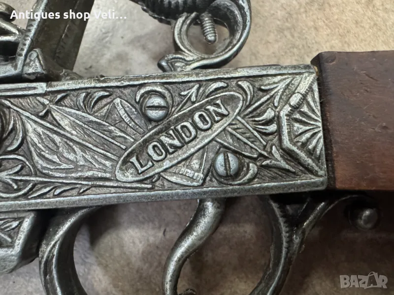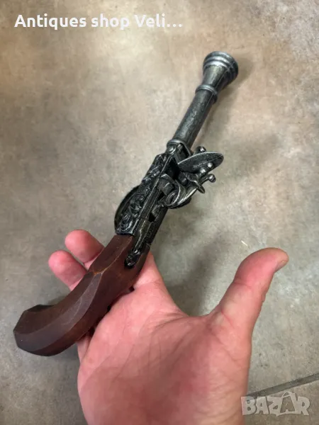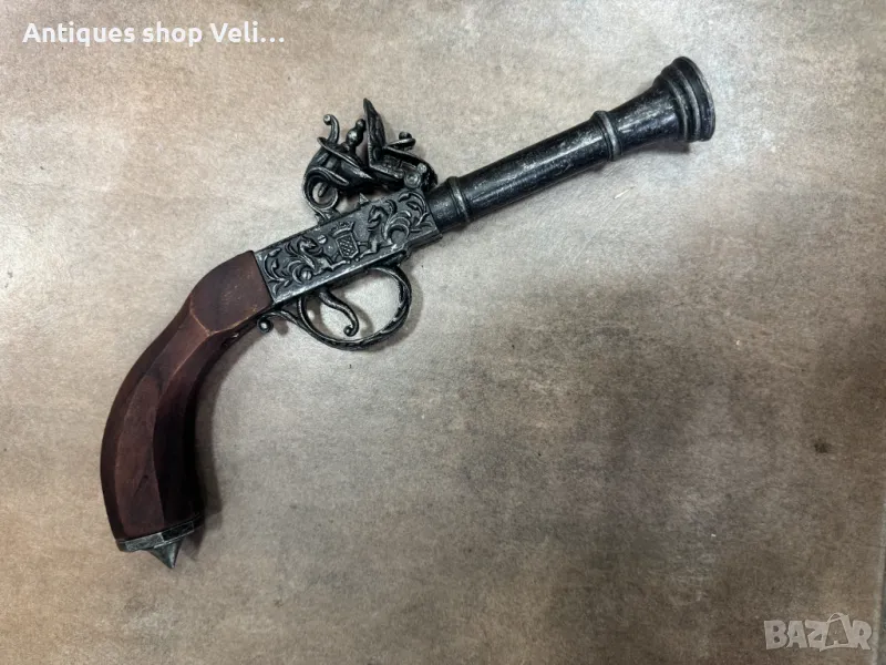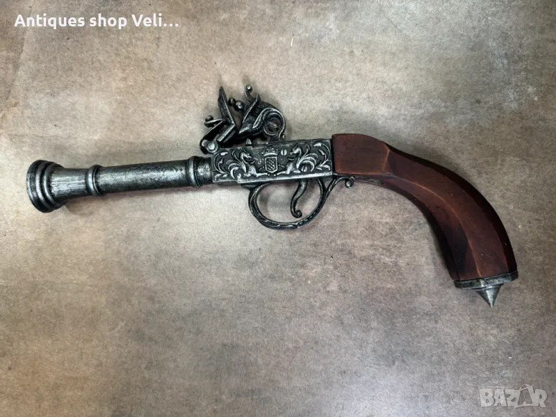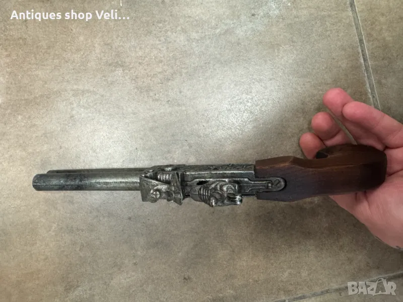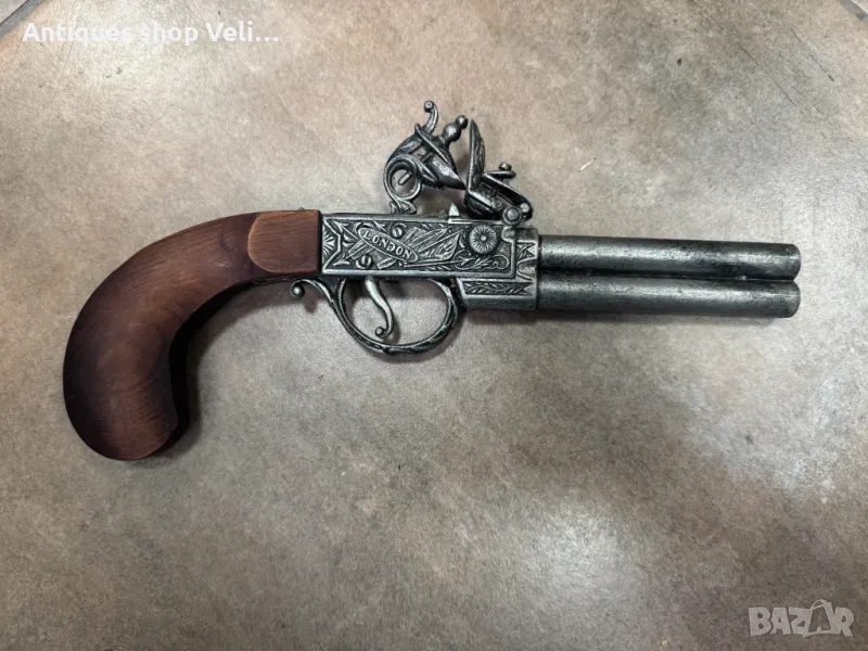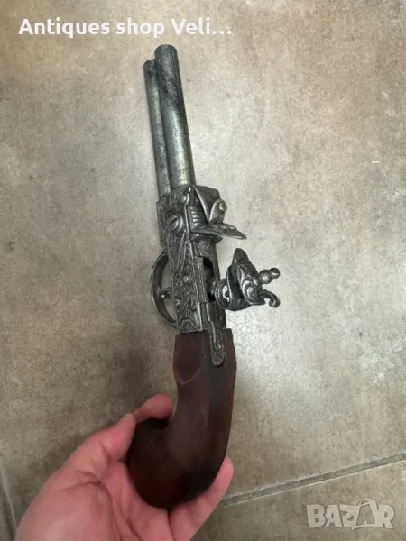 Чифт кремъчни пистолети изработени от метал с дървен приклад. Механизмите работят. Добро състояние. По отделно 130лв. за брой. Предлагаме доставка с Еконт и лично предаване за градовете Велико Търново, Русе и Сливен!