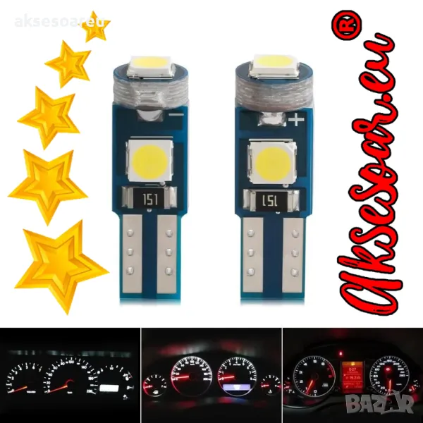 2 бр. X T5 малки крушки с 3 SMD LED диоди супер ярка светлина с 3030 LED за автомобилно табло LED за вътрешно осветление на автомобила Автоматични странични габаритни
