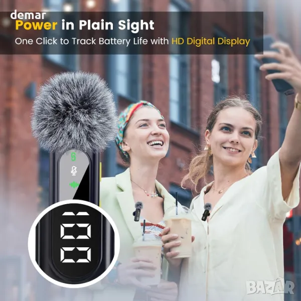 Този комплект двойка безжични лавалиер микрофони разполага с цифров дисплей за батерията и предлага до 14 часа употреба, което го прави идеален за дълги сесии на запис. Той е универсално съвместим с USB-C и Lightning устройства, включително iPhone, Android телефони, компютри и таблети, с истинска plug-and-play настройка, която не изисква приложения или Bluetooth. Ясен 360° всепосочен звук е осигурен чрез усъвършенствано шумопотискане, с четири аудио режима, включително оригинален, реверберация, намаляване на шума и без звук. Безжичният обхват от 100 фута (30 метра) и въртящата се щипка добавят свобода и гъвкавост, докато системата позволява зареждане по време на употреба с включения двоен кабел за зареждане. Всичко необходимо - микрофони, приемник, кабели, адаптери и ветрозащитни екрани - е включено в един пакет.