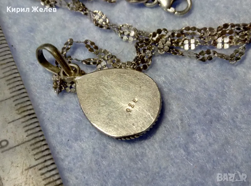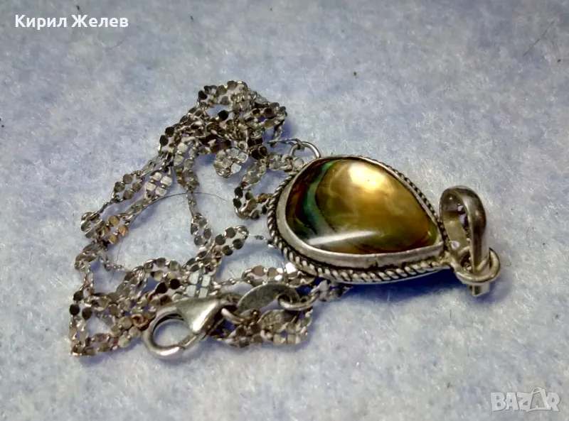ПРЕКРАСЕН СРЕБЪРЕН МЕДАЛЬОН СРЕБРО 925 с КРАЛСКИ СЕДЕФ и СРЕБЪРНА 925 ВЕРИЖКА с БЯЛА ПОЗЛАТА 45707
