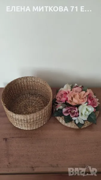 Плетена кутия с букет изкуствени рози на капака → Обява 50421585