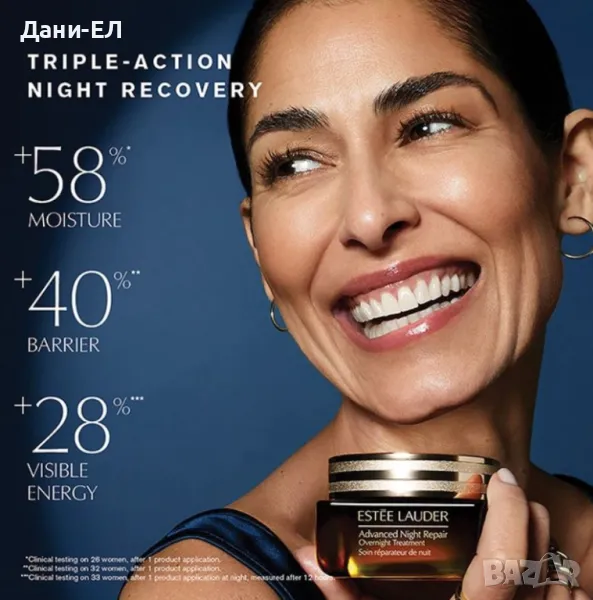 Събудете се с по-красива сутрин: нощната терапия Estée Lauder Advanced Night Repair Overnight Treatment ще се погрижи за кожата ви, докато спите. Има троен ефект – възстановява хидратацията, укрепва кожната бариера и дава на кожата ви видима енергия. С приятна текстура, която се слива с повърхността като втора кожа, подхранва кожата, докато спите. Превърнете вечерната си рутина в пътешествие към по-съвършен и сияен тен само за една вечер.