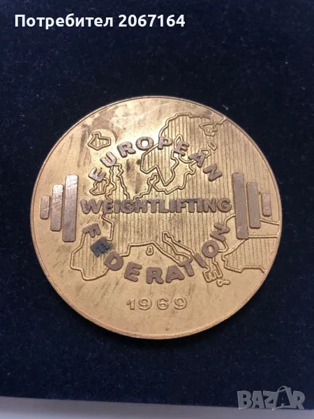 Плакет на европейската федерация по вдигане на тежести 1969 .Не е почистван , няма кутия !