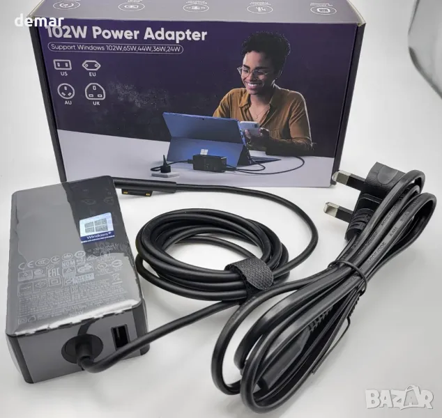 Това зарядно устройство за Microsoft Surface с мощност 102 W разполага с магнитен конектор с индикатор за състоянието на захранване, USB порт за зареждане на допълнителни устройства и широка съвместимост с множество модели Surface, включително сериите Pro, Laptop, Book, Go и Studio. Поддържа различни мощности (от 24 W до 102 W) и модели, предлагайки надеждна работа с вградени защити срещу късо съединение, претоварване и прегряване, за да се гарантира безопасно и стабилно зареждане. 102W Microsoft Surface Charger for Surface Pro 3, Surface Pro 4, Surface Pro 5, Surface Pro 6, Surface Pro 7, Surface Pro 7+, Surface Pro 8, Surface Pro 9, Surface Pro 10, Surface Pro X, Surface Laptop, Surface Laptop 2, Surface Laptop 3, Surface Laptop 4, Surface Laptop 5, Surface Laptop 6, Surface Laptop 7, Surface Book, Surface Book 2, Surface Book 3, Surface Go, Surface Go 2, Surface Go 3, Surface Go 4, Surface Laptop Go 1/2/3, Surface Laptop Studio