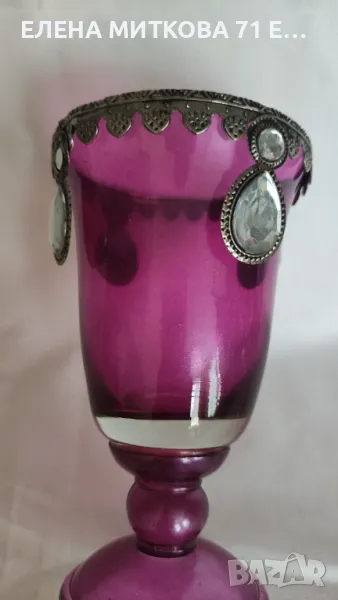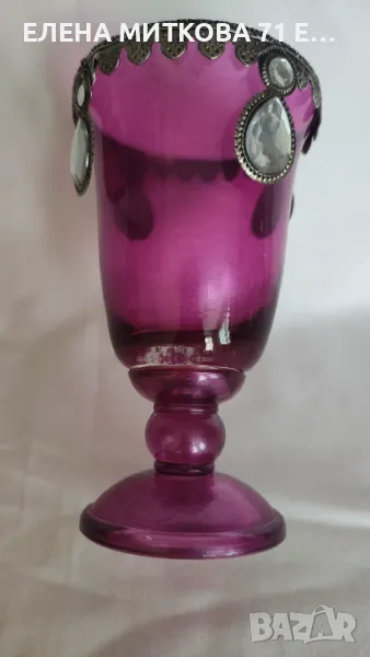 Лилава ваза тип чаша с метален обков и камъни → Обява 50422070