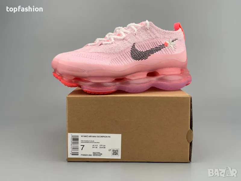 Nike Air Max Scorpion в розов цвят съчетават смел дизайн и изключителен комфорт, създадени специално за модерната жена. Със своята иновативна въздушна подметка, те осигуряват мекота и пружинираща стъпка през целия ден.