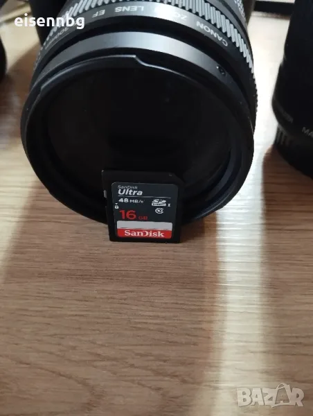 Фотоапарат Canon EOS 1100D Използван е много малко като аматьор и не е използван от дълго време. Възможност, която не е за изпускане за любопитните. Карта памет SanDisk Ultra 16GB. Обектив 18/55. Налични са зарядно, батерия, каишка и чанта. Цената е крайна.