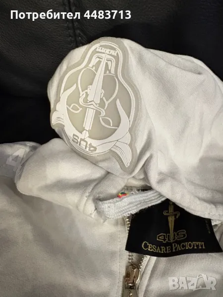 Чисто нов , не е обличан. Пран е и за това изглежда леко смачкан. Размер С. Закупен от столичен мол за 2000 лв. Бялото не е моя цвят и седи неизползван. Жал ми е да стои