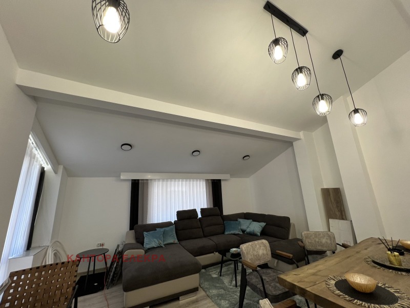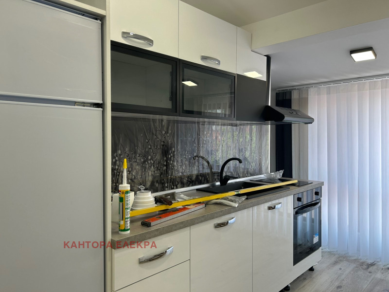 Разполага с две отделни спални, хол, кухня с трапезария, килер, баня и тоалет и тераса. Жилището е изцяло ремонтирано и с нови мебели. Свободен за нанасяне!