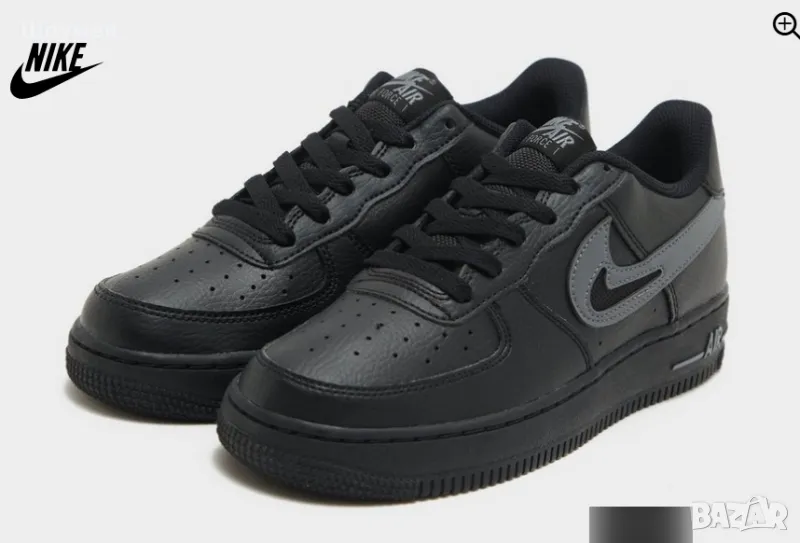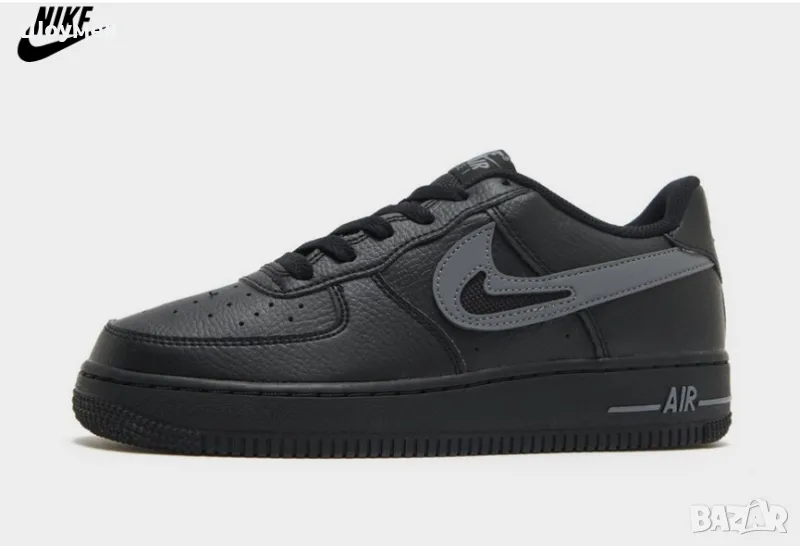 Създай легендарна визия с младежките маратонки Air Force 1 Low от Nike. Моделът в черно и сиво има лицева част от гладка кожа за повече здравина. Връзките и подплатената яка около глезена стабилно придържат крака, а дупките на пръстите гарантират проветряване. Междинната подметка с емблематичната за Nike амортизация Air омекотява всяка крачка. Стабилният гумен грайфер създава сцепление. Дизайнът се допълва от лого Nike Air на петата и езика, както и от Swoosh на страничните панели.
