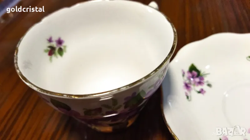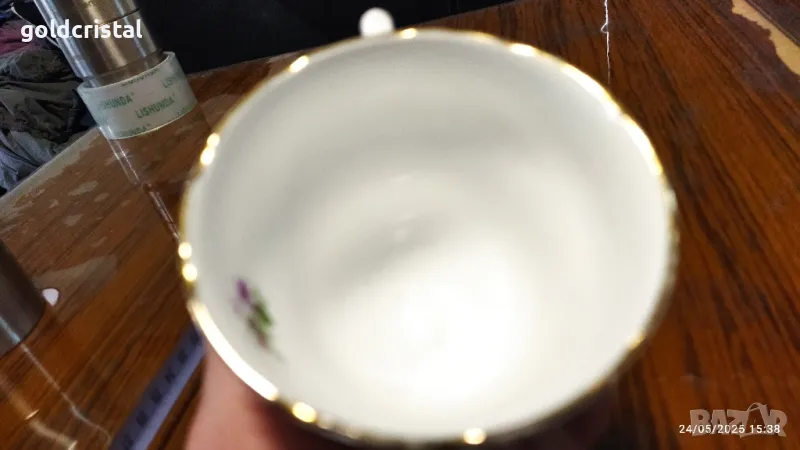 Стар английски костен порцелан чаша за чай с чинийка без забележки на места изтъняване на златен кант сервиз комплект сет лот ретро арт декор винтидж колекция стари старинни антикварни предмети обзавеждане за дома и семейството подходящи за подарък за ценители и колекционери