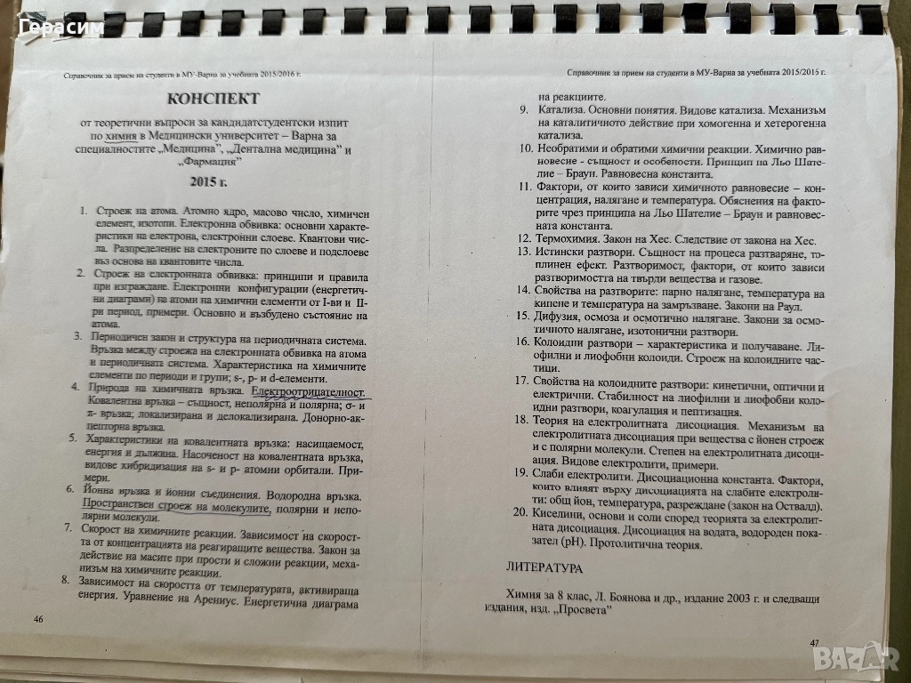 Теми по химия предаденина подготовителен курс по Химия на МУ Варна - 100лв