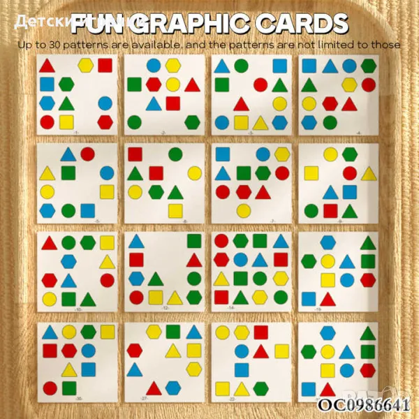 Пъзел с геометрични форми, ранно образование, сортиране, строителни блокове → Обява 50426461