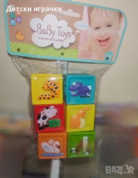 - 6 меки гумени кубчета с различен цвят, с животни