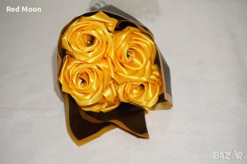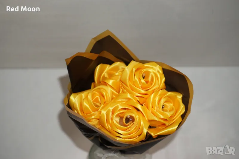 Чисто Нов Ръчно Изработен Букет От 5 Вечни Жълти Рози → Обява 50426475