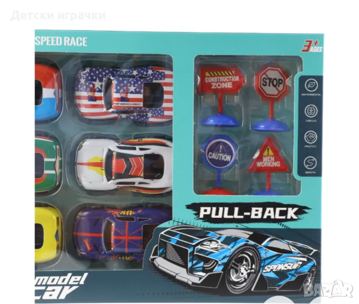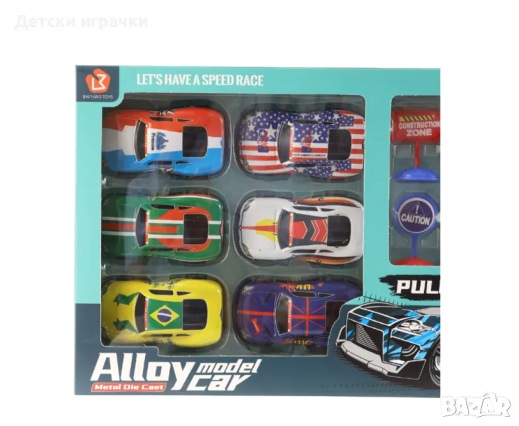 Комплекта включва 6 метални състезателни коли, проектирани с щателна детайлност.