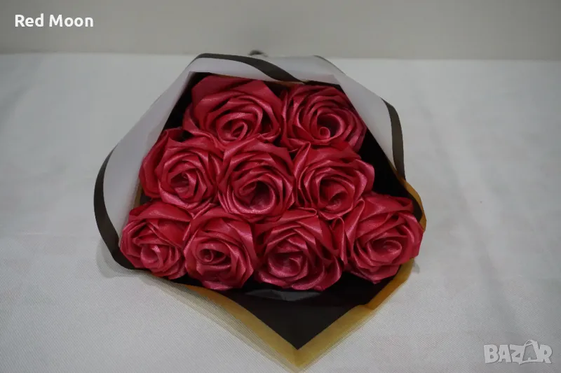 Чисто Нов Ръчно Изработен Букет От 9 Вечни Розови Рози → Обява 50426485