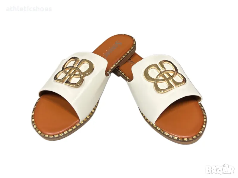 Дамски бели чехли на равна подметка , снимка 1 - Чехли - 50428055 Дамски бели чехли на равна подметка , снимка 2 - Чехли - 50428055 1/2