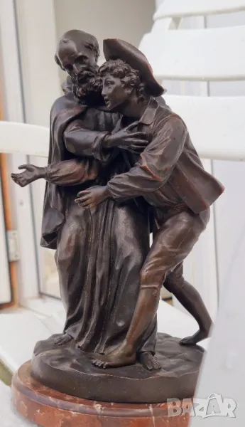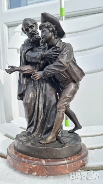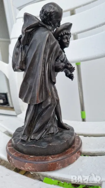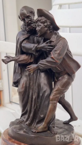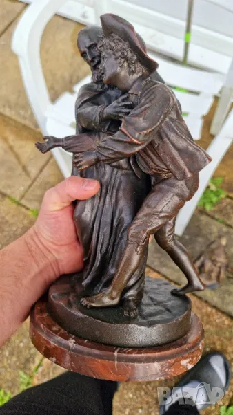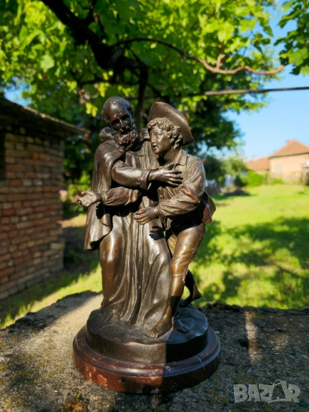 Бронзова Скулптура Луи-Симон Боазо Франция 1743- 1809г.Фрьор Филип, края на 19 век, бронзова фигурна група по Лафонтен, Контес, с отлята буква B за основа, върху пъстър кръгъл мраморен пиедестал, висок 29 См.Края на 19 век.Много детайлна изработка и патина.за повече информация на Тел или смс Благодаря!