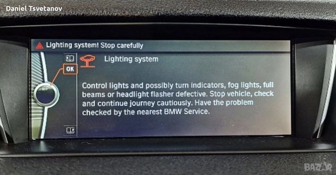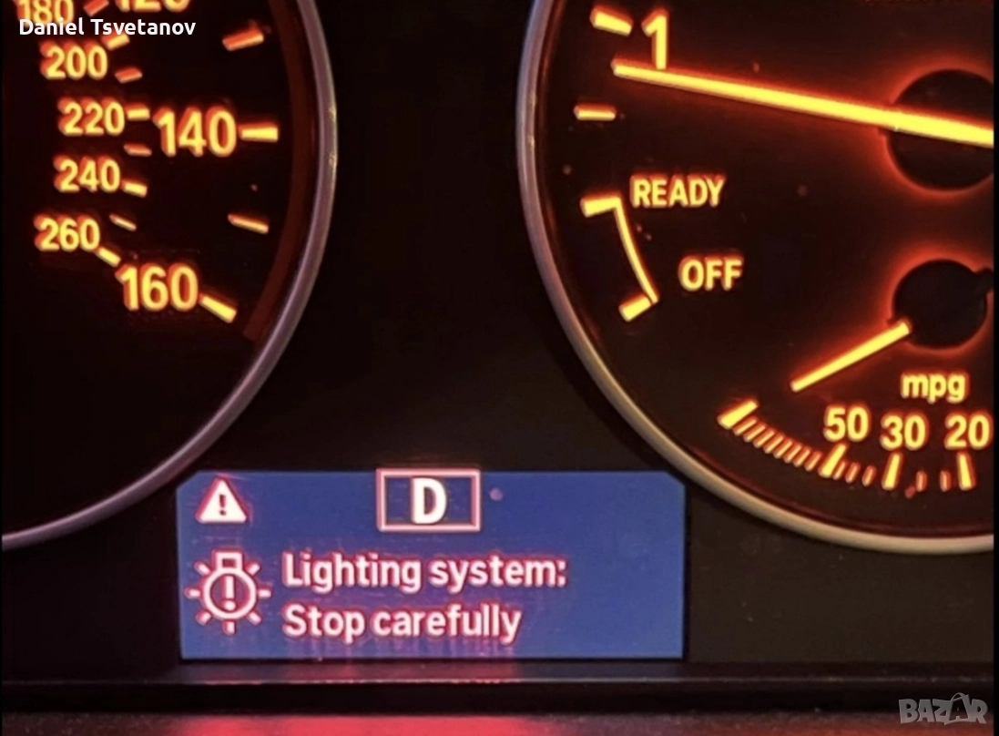 * Дисплеят на километража и навигацията показват съобщението "Lighting system failure" (снимки 4, 5 и 6).