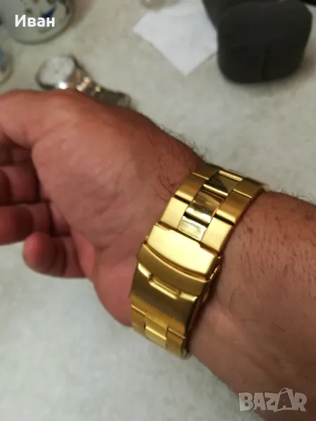 Носен е 4.5пъти на практика нов.диам.на касата45мм.,с коронката 48мм.,дебелина на касата 10.5мм.,ширина верижка 22мм.