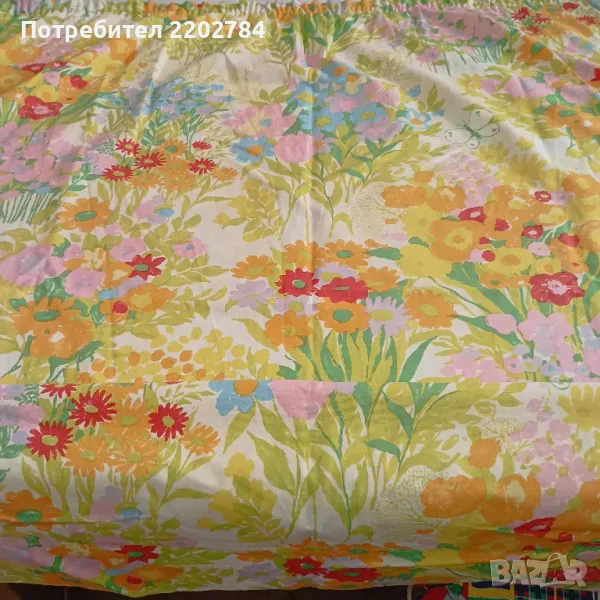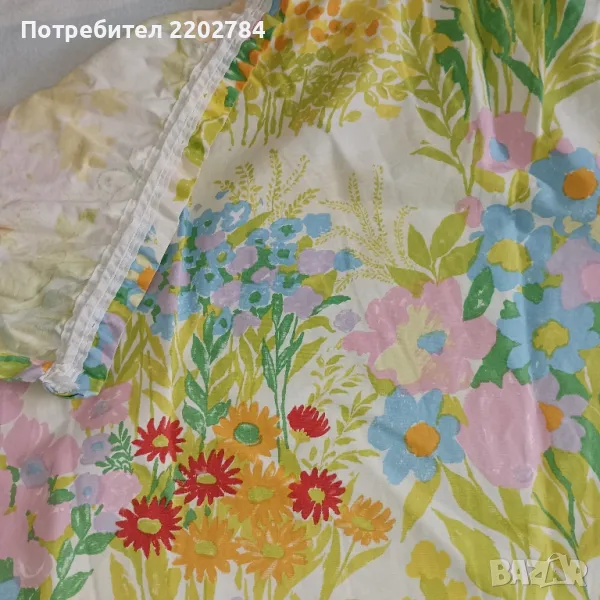 Второто е от плътен памук с прекрасни пролетни цветя.С перделик без копчета.Ширина 120см,дължина 140см.Има 12см подгъв и може да се удължи ако има нужда.Без забележки.
