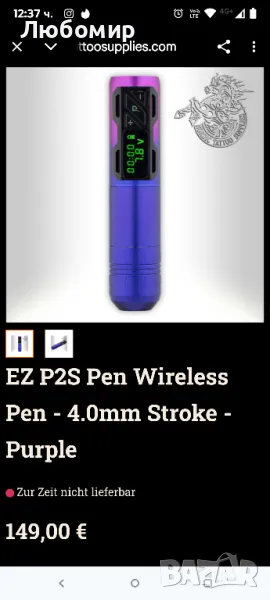 EZ безжична машина за татуировки с батерия - P2S 4.0 мм ход