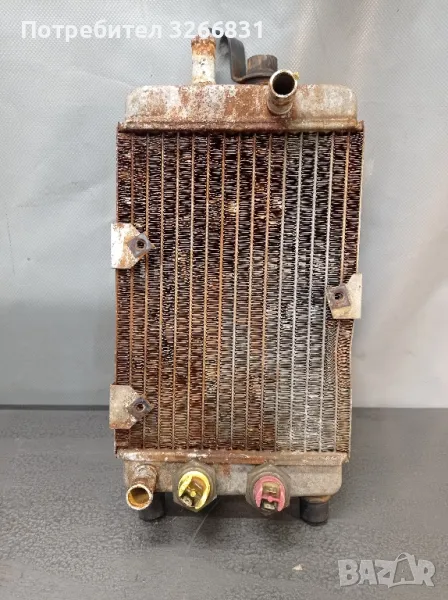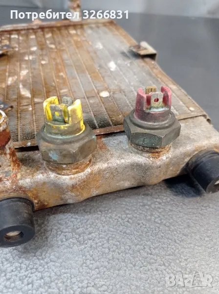 радиатора е доста мръсен на вид но е в перфектно техническо състояние, надуван е на 3 атмосфери налягане и е перфектен, цената е само за алуминиевото тяло, двата датчика се продават поотделно и са по 15 евро за брой, възможен бартер за стари ретро мотоциклети или части за тях с доплащане