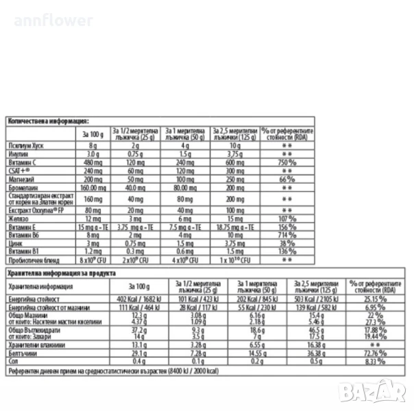 ВАЖНО! 50g от шейка може да се окаже твърде голямо количество за някои хора (за 1 основно хранене, прието с вода). В такъв случай може да намалите приема до 25g (1/2 мерителна лъжичка).