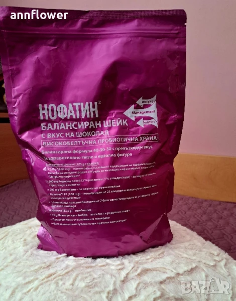 Нофатин Балансиран Шейк е високобелтъчна пробиотична храна. Част е от цялостната програма Нофатин.