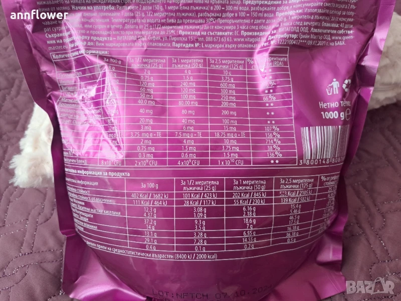 Ако изпозлвате вода, тази опаковка ще ви е достатъчна за 20 основни хранения. Ако използвате кисело или прясно мляко, опаковката ще ви стигне за 40 основни хранения.