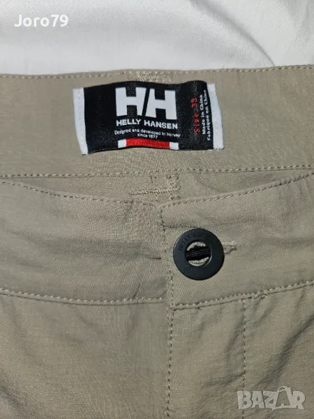 Здравейте,късите панталони са като нови,с една малка забележка,едната буква на логото е леко протрита без да е нарушена цялостта на плата,яввно от химическото чистене(снимка 4).Поради тази забележка цената е такава!100% Оригинални (Има RN и CA кодове и номер на производство).Произведени от световноизвестната марка Helly Hansen един от лидерите в производството на облекло за ежедневието.Изработени от лек и бързосъхнещ полиестер съчетан с еластан,имат халки за колан,имат пет джоба,и джоб за смартфон!Подходящи за ежедневна употреба и всички дейности на открито.Извинявам се ако някои снимки са осветени от светкавицата на фотоапарата или слънцето,шортите няма избледняване на материята.Цената не подлежи на коментар освен при покупка на още един артикул,ще отговарям само на сериозни оферти!