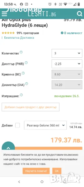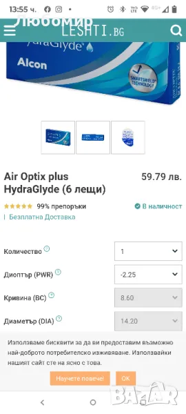 Air Optix plus HydraGlyde 23лещи -2.25