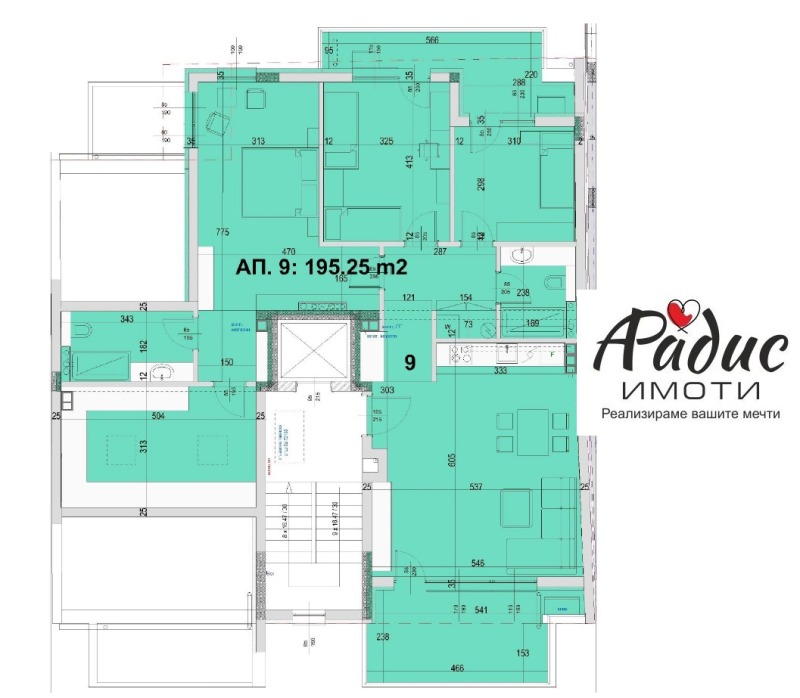 АРАДИС ИМОТИ предлага на Вашето внимание НОВО СТРОИТЕЛСТВО МНОГОСТАЕН АПАРТАМЕНТ С ПЛОЩ 200,00 КВ.М. състоящ се от дневна+кухня, четири спални, две бани с тоалетна, коридор и тераси . Изложение юг и север , към жилището има мазе.