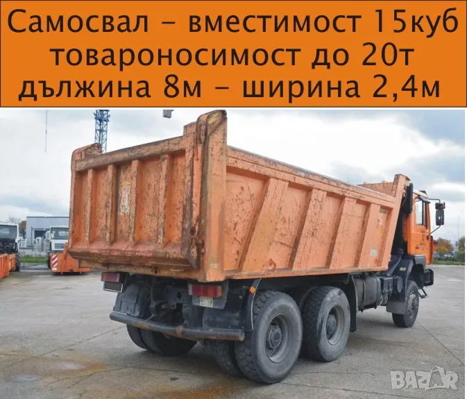 Транспорт с Камион 20 тона товароносимост САМОСВАЛ -автоматично разтоварване, изсипване на НАСИПНИ