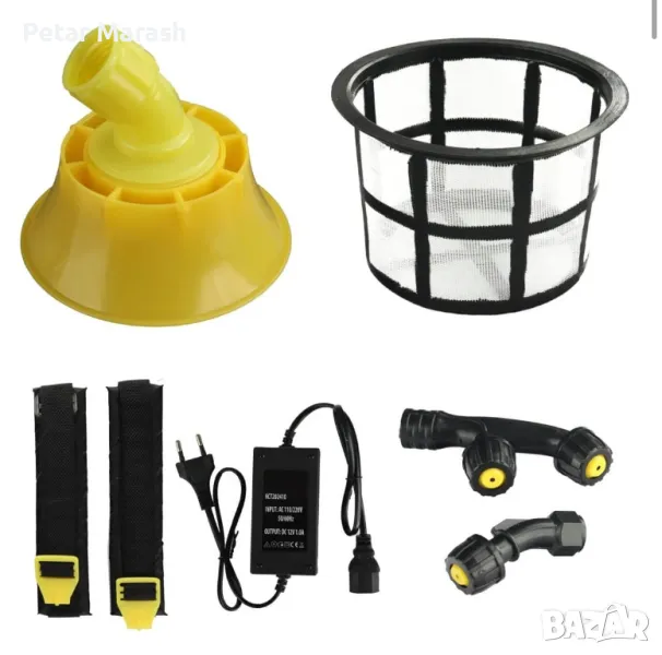 В комплекта ще намерите удобни колани за носене, зарядно устройство, телескопична тръба и пълен набор от аксесоари за максимална ефективност.